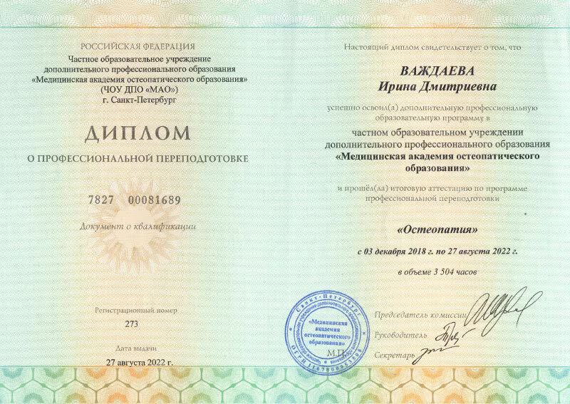 ОСТЕОПАТ ВАЖДАЕВА ОТЗЫВЫ