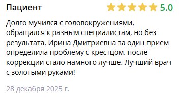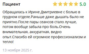 Запишитесь на прием к врачу остеопату с медицинским стажем более 20 лет. Улучшение часто происходит после первого приема.